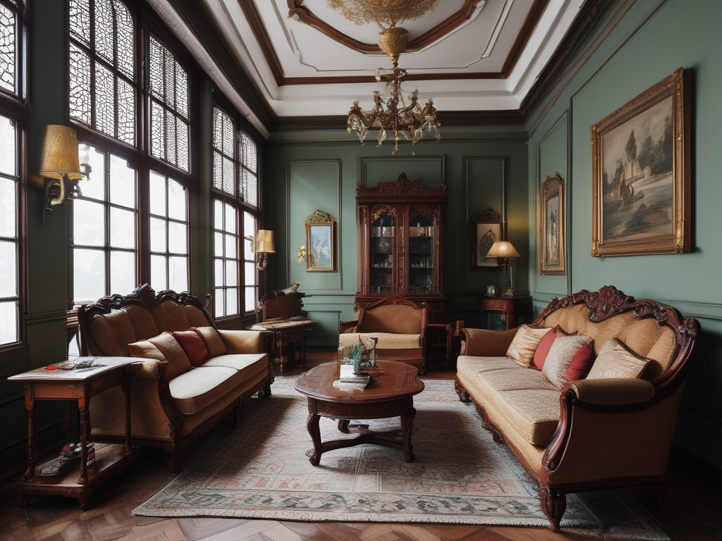 Pilih furniture yang memiliki desain klasik dan berkualitas. Elemen seperti kursi bergaya Victorian atau meja kayu dengan ukiran bisa menjadi fokus utama ruangan.