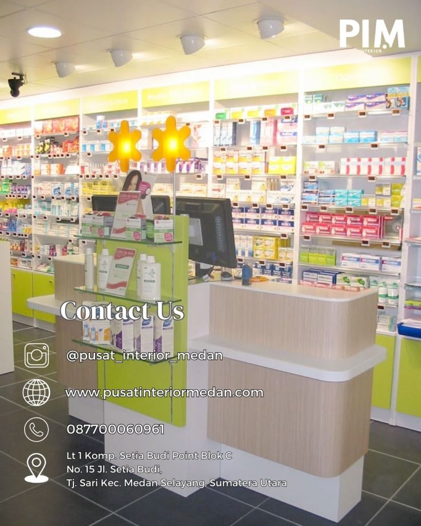 Percayakan kebutuhan desain interior apotek Anda kepada Pusat Interior Medan. Dengan pengalaman dan profesionalisme, mereka siap membantu menciptakan ruang yang fungsional dan estetis.