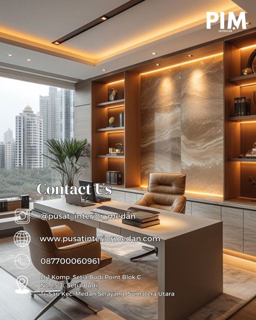 Jangan ragu untuk menghubungi Pusat Interior Medan untuk konsultasi dan informasi lebih lanjut. Dengan layanan yang profesional dan hasil yang memuaskan, mereka siap membantu Anda menciptakan ruang kerja yang estetis dan fungsional.