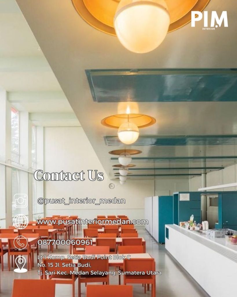 Dengan layanan terbaik dan desain interior yang inovatif, Pusat Interior Medan siap membantu menciptakan kantin sekolah yang mendukung kenyamanan dan meningkatkan pengalaman makan bagi siswa.
