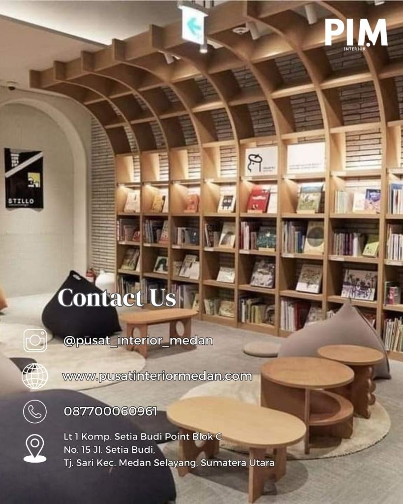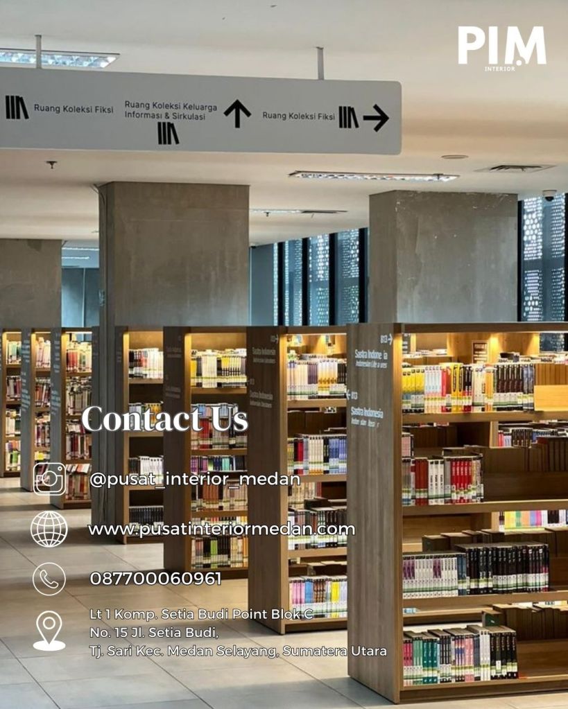 Pusat Interior Medan adalah perusahaan yang bergerak di bidang jasa interior, custom interior, dan desain interior yang siap membantu menciptakan ruang perpustakaan yang nyaman dan menarik. Dengan pengalaman yang luas serta tim profesional, Pusat Interior Medan menghadirkan solusi desain interior terbaik sesuai dengan kebutuhan pendidikan.