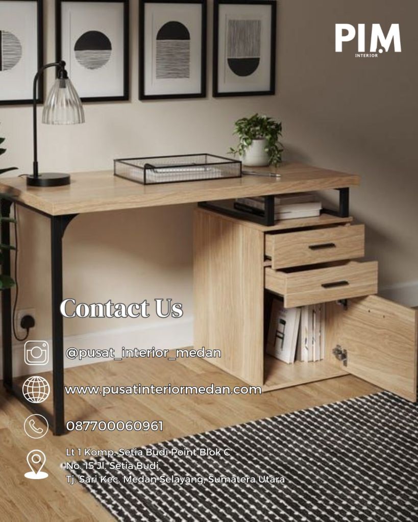 Pusat Interior Medan siap membantu Anda menciptakan meja custom yang sesuai dengan konsep interior rumah atau kantor Anda. Jangan ragu untuk menghubungi kami di: