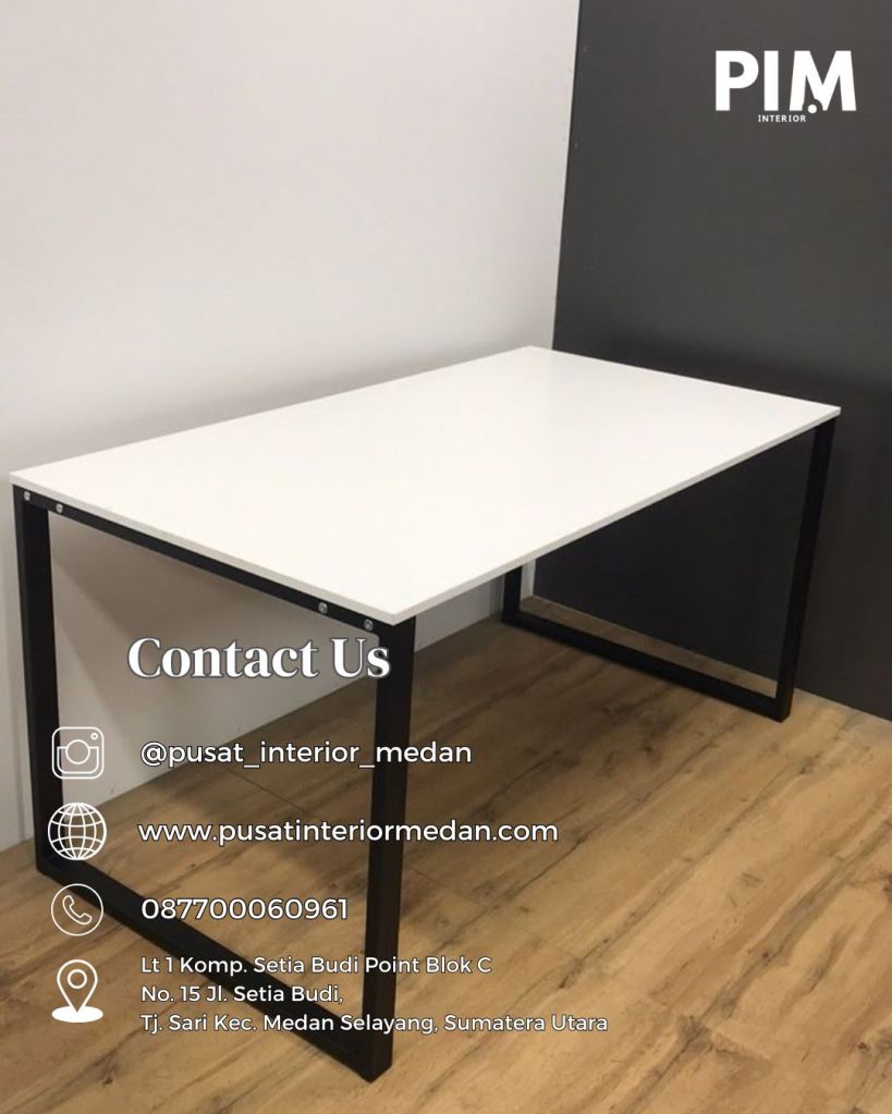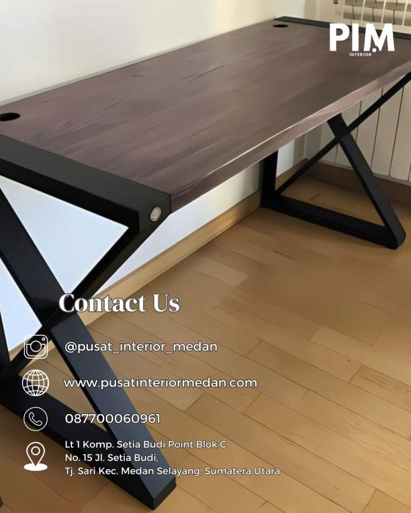 - Besi atau Baja: Ideal untuk rangka meja agar lebih kuat dan stabil.