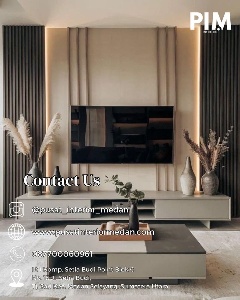 Dapatkan backdrop TV multiplek custom terbaik untuk ruangan Anda hanya di Pusat Interior Medan!